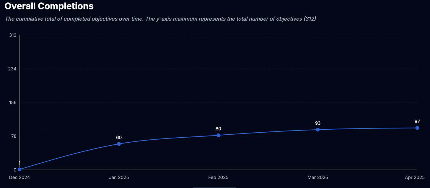 I knew that a lot of progress had been made extremely early on, but I recently checked and didn’t see a lot of movement. I came across a graph that spells it out: